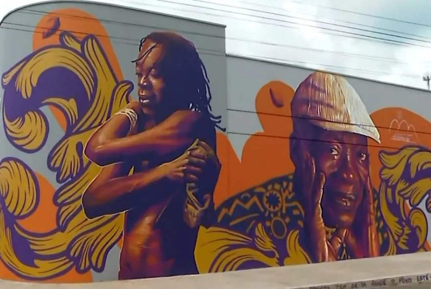 Obra foi feita pelo grafiteiro e muralista Kaká Chazz, que é nascido na cidade,