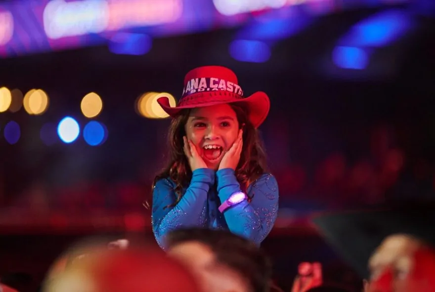 Minifãs de Ana Castela roubam a cena com chapéus na arena do Ribeirão Rodeo Music