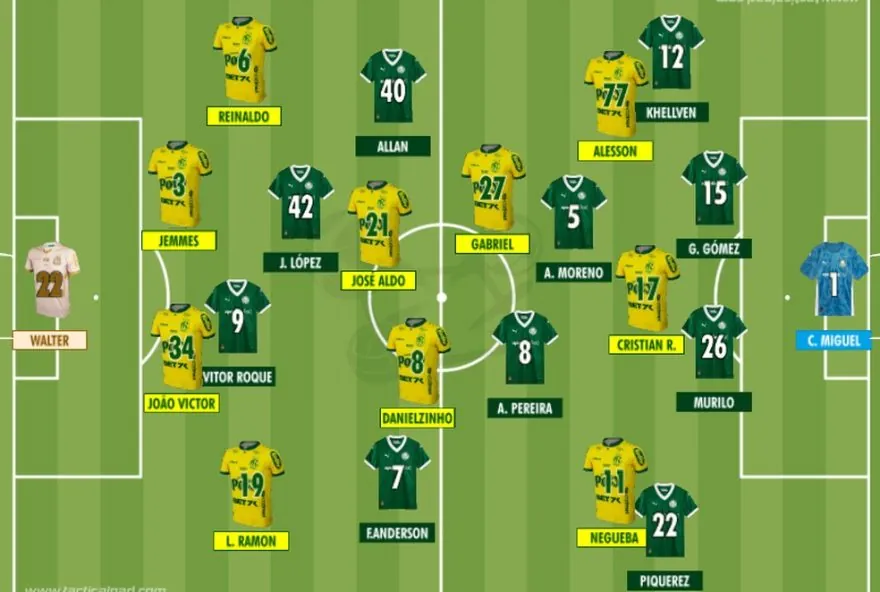 vezes pelo centro. Reinaldo e Gabriel assustaram em chutes de longe. O Verdão,