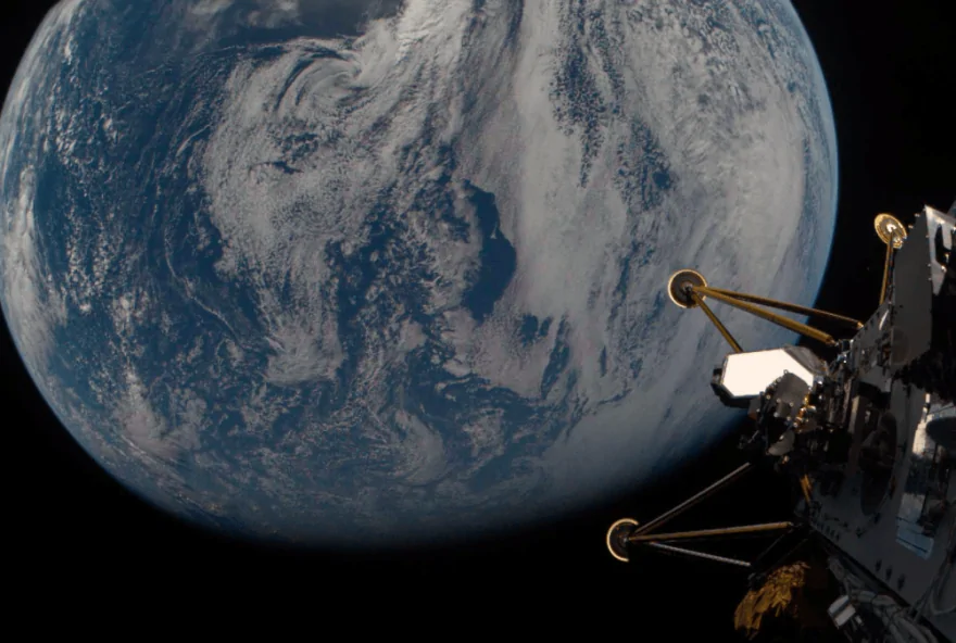 Athena foi lançado na última quarta-feira (26) com uma viagem planejada para oito dias. A NASA divulgou uma imagem feita pelo módulo de pouso IM-2 Nova-C, chamado Athena, lançado com destino à Lua na última quarta-feira (26). Na selfie feita pelo instrumento, o planeta Terra aparece de fundo.