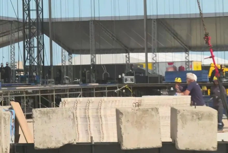 Palco do show de Lady Gaga já está sendo montado; fã guarda lugar na areia de Copacabana