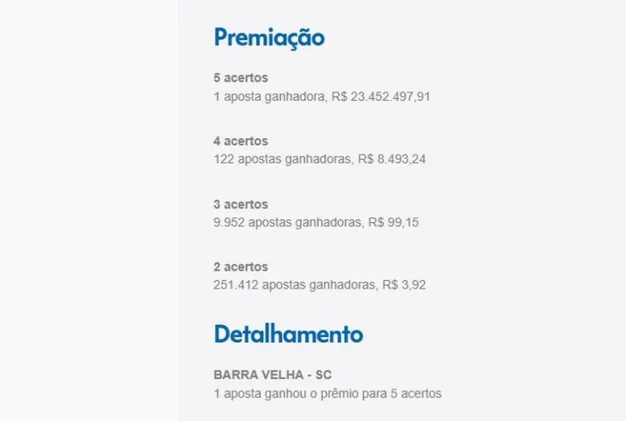 Devido ao alto valor do prêmio, o ganhador tem um prazo de 90 dias para solicitar o saque do montante em uma agência da Caixa Econômica Federal. A cidade de Barra Velha, com seus 45.371 habitantes, se destaca como um tradicional destino praiano na região. Uma curiosidade interessante é que, caso o prêmio fosse dividido igualmente entre todos os moradores, cada um receberia um pouco mais de R$ 500.