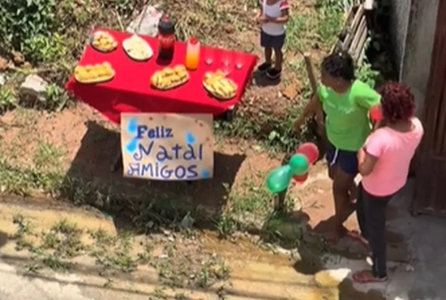 “Feliz Natal, amigos!” Assim foi recebida uma equipe de garis no Bairro Santos Dumont, em Juiz de Fora, na segunda-feira (23). Com uma mesa de café composta por salgados, refrigerantes e sucos, moradoras e crianças presentearam os trabalhadores que sempre recolhem o lixo da região.