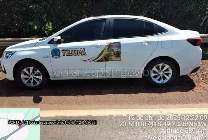 1 de 1 Acidente com carro da Prefeitura de Tejupá (SP) na SP-255 neste sábado (12) — Foto: Reprodução/Artesp