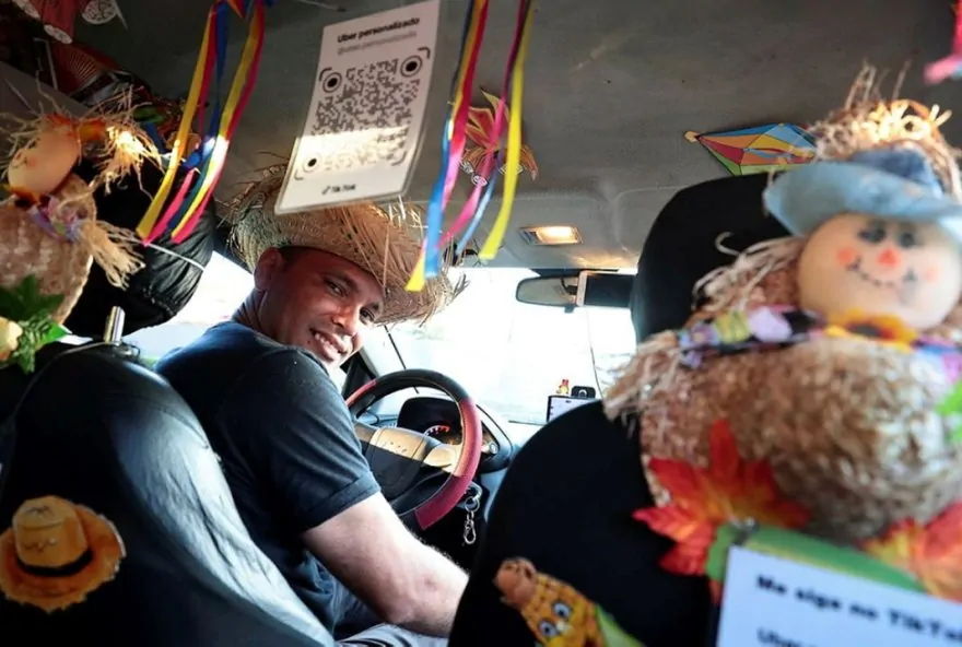 Motorista de app cria festa junina dentro de carro para surpreender passageiros