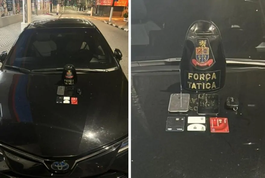 Durante a abordagem, os agentes conseguiram recuperar três cartões de crédito em nome do motorista, além de encontrar a chave do veículo que estava com outros dois adolescentes, de 15 e 16 anos. Todos os envolvidos foram levados à delegacia para audiência de custódia. Os adultos estão sob custódia judicial, enquanto os adolescentes estão sob a responsabilidade da Justiça da Infância e Juventude.