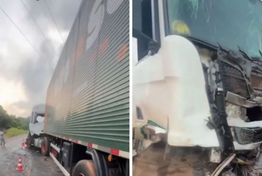 Motorista de caminhão morre após veículo que ele dirigia ficar preso entre duas carretas na BR-222, no MA