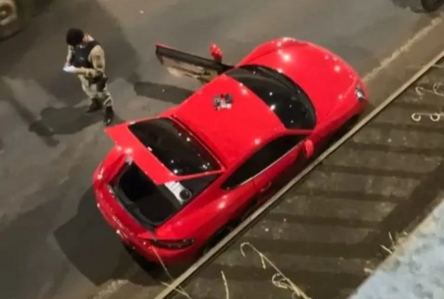Ao ser realizada consulta, os PMs verificaram que o veículo estava com a documentação irregular, com licenciamento de 2024 atrasado. Quando o carro de luxo se aproximou do dispositivo de fiscalização, a polícia ordenou a parada obrigatória, indicando ao motorista o local para estacionar. O veículo ingressou na área de abordagem e, de forma abrupta, arrancou e fugiu em alta velocidade. Ele ultrapassou diversos sinais vermelhos e de parada obrigatória.