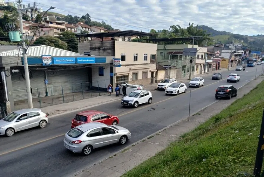 Como mostra a foto, o veículo capotou na Rua Paracatu, em Juiz de Fora; de acordo com a PM, o motorista apresentava sinais de embriaguez. Outras notícias da região incluem um acidente com uma carreta em Ubá, em que a carga de móveis caiu sobre uma academia ao ar livre, além do bloqueio total de um trecho da Avenida Brasil, em Juiz de Fora, para realização de obras.