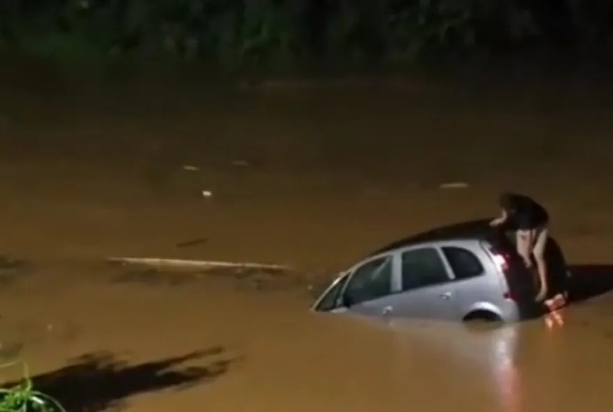 O carro saiu da pista DA Avenida Bepe, na noite DE terça-feira (17). Vídeo gravado por uma testemunha mostra que, após sair pela parte DE trás do veículo, o homem nadou até a margem, enquanto os bombeiros ainda não haviam chegado.