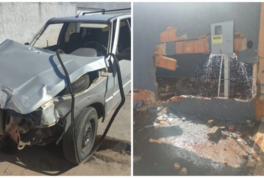 Motorista fica ferido após bater o carro no muro de casa, em Unaí