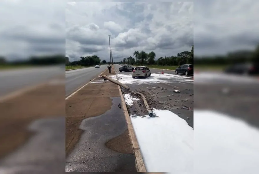 Motorista fica ferido após bater carro em poste no início da Ponte JK
