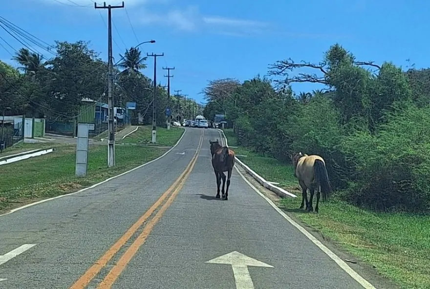 Moradores têm denunciado risco de acidentes e outros problemas com animais soltos na rodovia e nas ruas da ilha.