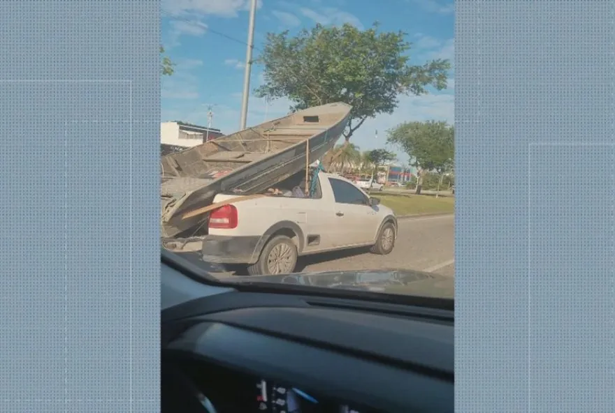Motorista é flagrado transportando barco preso a carro de passeio; VÍDEO