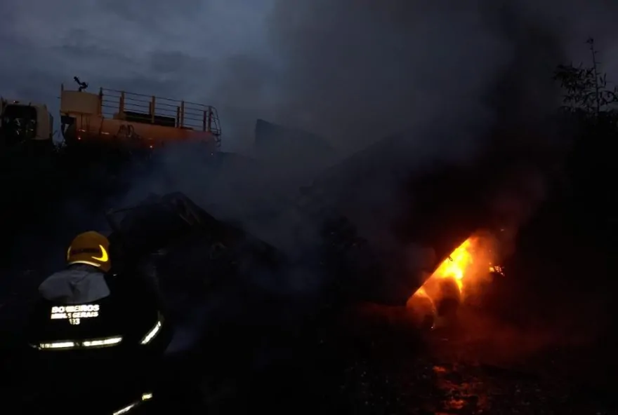 Motorista morre carbonizado em colisão entre carreta e caminhões na BR-153, em Frutal: detalhes e atualizações da ocorrência