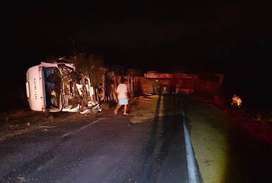 Um acidente entre uma carreta carregada de soja e um carro matou um motorista e deixou quatro feridos na BR-153, na noite de domingo (23), em Fronteira. A idade das vítimas não foi informada.