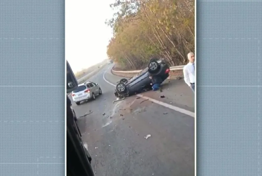 Motorista perde controle e capota carro na Rodovia Zeferino Vaz em Cosmópolis; veja imagens