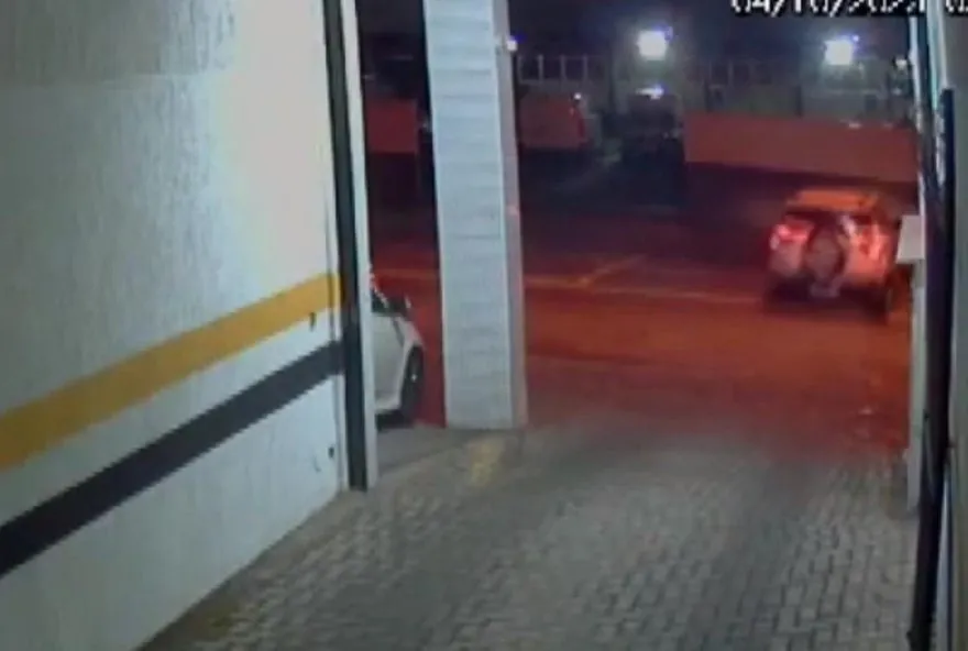 Imagens de câmera de segurança mostram o carro saindo do estacionamento em alta
