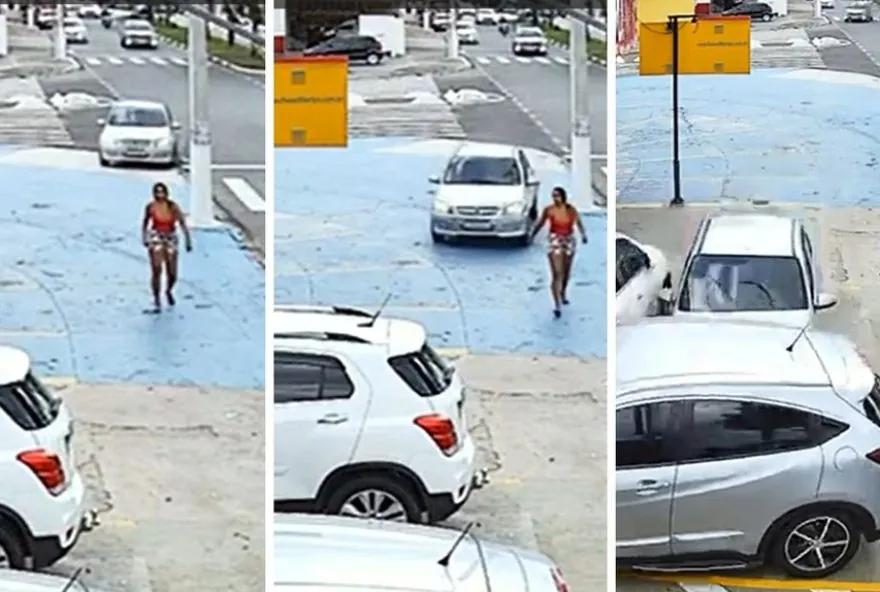 A câmera de segurança de um salão de beleza registrou o momento em que o carro invadiu a calçada, por conta do mal súbito do condutor. A cena assustadora poderia ter tido um desfecho trágico, caso a pedestre não tivesse conseguido escapar a tempo. Não há detalhes sobre a identidade da mulher que quase foi atingida pelo veículo desgovernado.