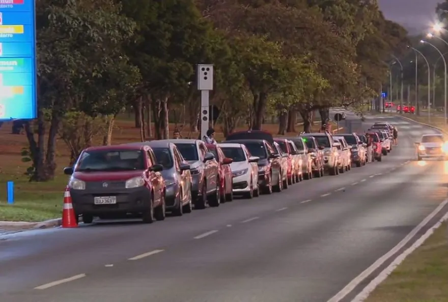 Dia livre de impostos: motoristas madrugam e fazem fila para abastecer com gasolina a R$ 4,52 no DF