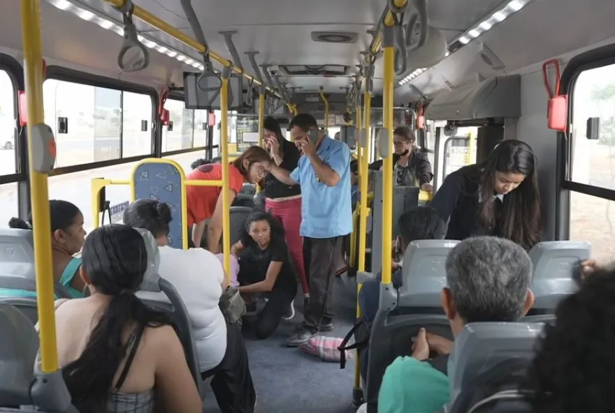 Mulher passa mal e desmaia em ônibus lotado no DF
