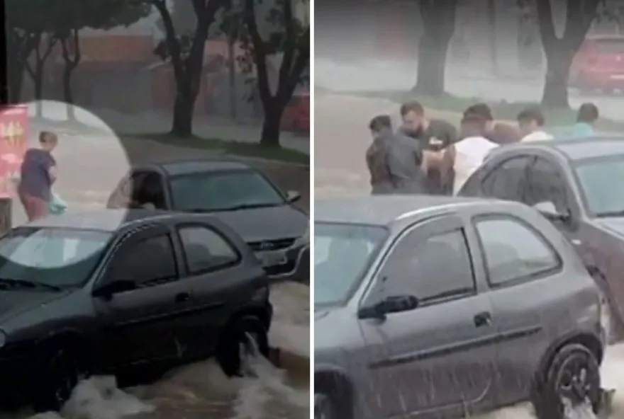 Uma mulher foi arrastada pela enxurrada e ficou presa debaixo de um carro em