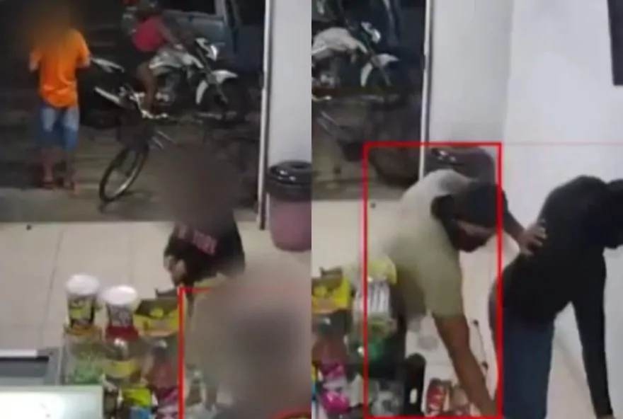 O momento do crime foi capturado por uma câmera de segurança, registrando o momento em que a vítima estava em uma moto em frente a um estabelecimento. Um carro prata se aproximou e dois homens armados desceram do veículo.