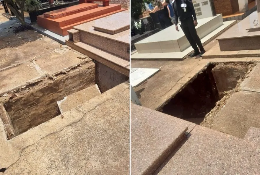 Tia e sobrinha ficam feridas após tampa de galeria ceder no Cemitério da Saudade em Ribeirão Preto, SP