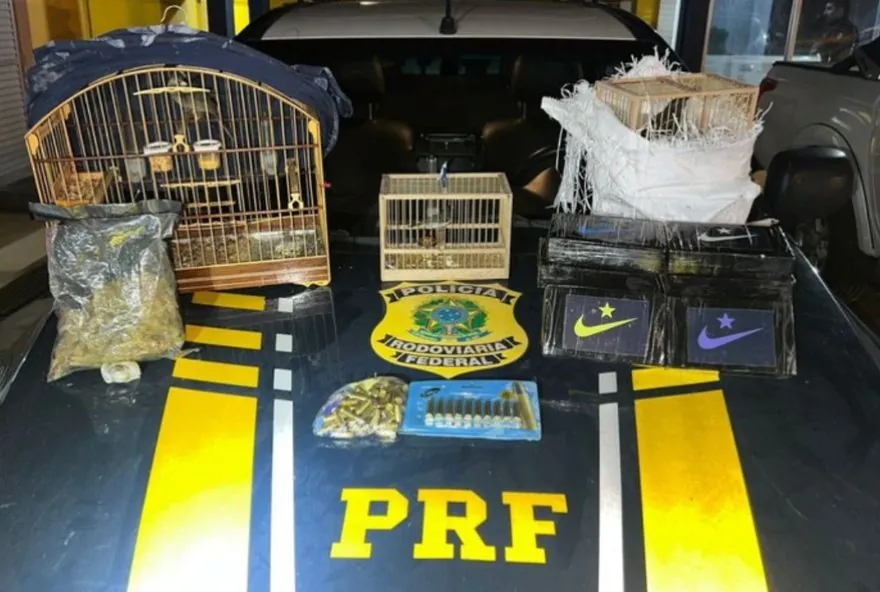 Uma mulher foi presa em flagrante na madrugada desta terça-feira (16) com drogas, munições, TV Box e aves silvestres na BR-116, em trecho de Feira de Santana, segunda maior cidade da Bahia. A suspeita estava em um ônibus turismo que saiu de Rio Grande da Serra (SP) com destino a Mata Grande (AL). O veículo foi vistoriado pela Polícia Rodoviária Federal (PRF) no âmbito da Operação Cão de Faro VI.