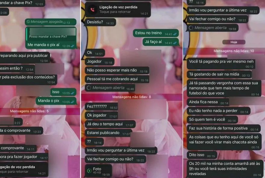 No fim da manhã da última quinta-feira (29), quando Luiz Henrique estava na concentração para o jogo final da Libertadores, em Buenos Aires, o atleta voltou a receber ameaças. As mensagens diziam que, se não fizesse um PIX de R$ 20 mil, as imagens e outras mensagens seriam colocadas nas redes sociais. Luiz Henrique respondeu e chegou a pedir um tempo, já que estava treinando. “As tentativas de extorsão aconteciam antes de jogos decisivos, com o jogador concentrado, num momento psicológico importante. Então, havia um claro interesse em desestabilizar o atleta”, diz o delegado Carlos Eduardo Rangel.