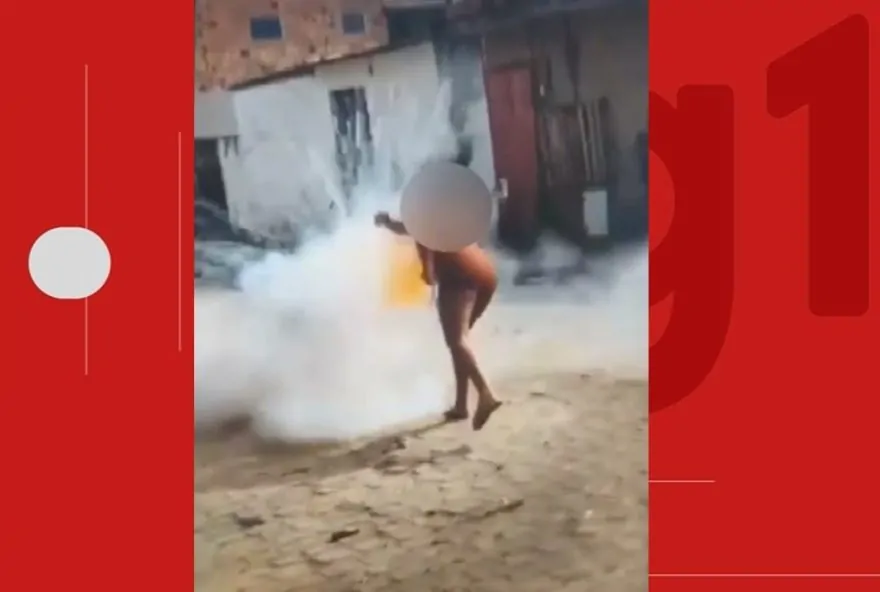 Em seguida, o artefato explode e ele sai correndo desesperado (assista mais
