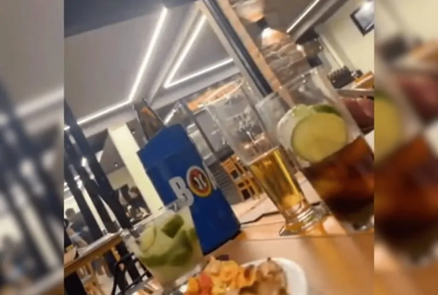 Imagens gravadas por clientes mostram a mulher entrando no restaurante e batendo