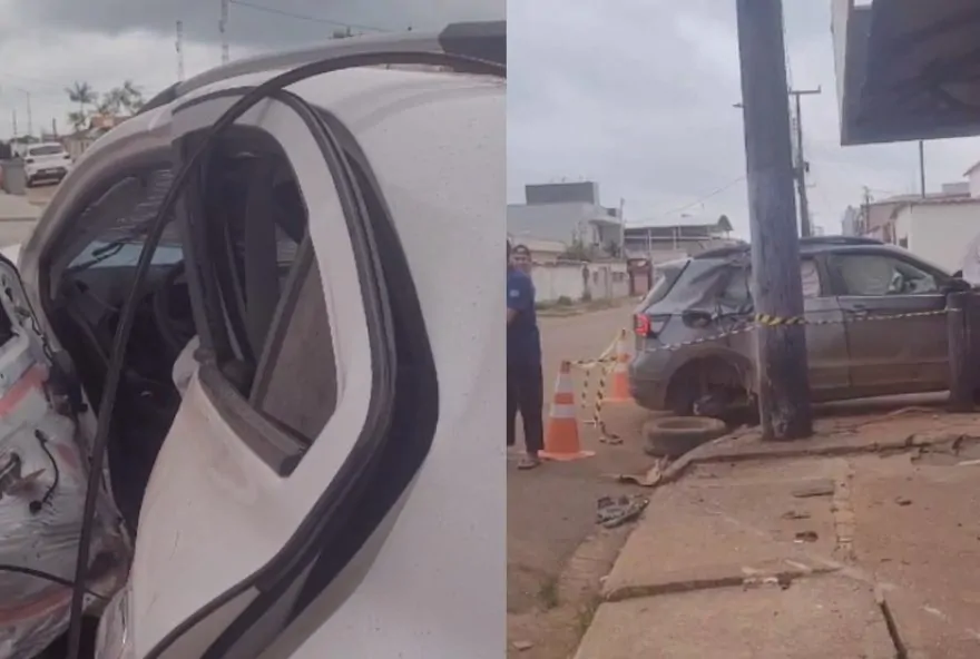 Já o carro cinza chegou a bater contra um poste e ficou totalmente destruído.
