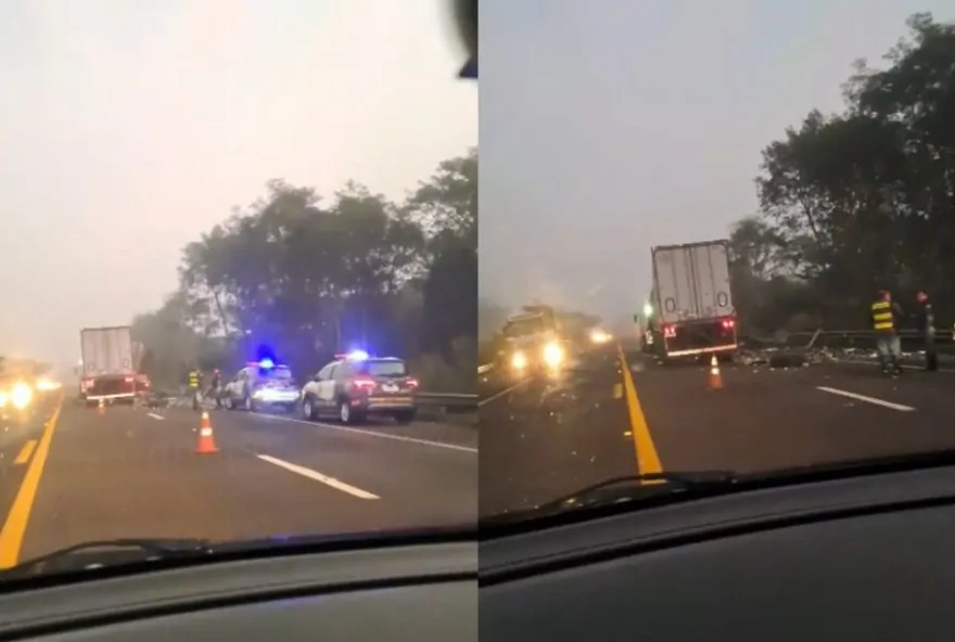 Conforme o Corpo de Bombeiros, um caminhão bitrem bateu na traseira de um caminhão que carregava cana-de-açúcar. Ainda de acordo com as informações da ocorrência, no momento do acidente havia muita neblina, o que pode ter dificultado a visão do motorista.