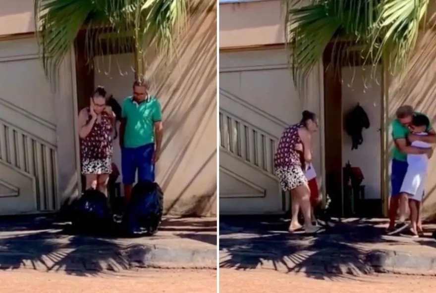 Os avós não viam os netos e a filha há quatro meses, o que motivou a surpresa. O vídeo foi filmado por um vizinho a pedido da mãe dos garotos.