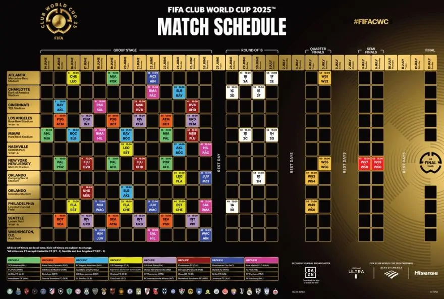 Mundial de Clubes 2025: Fifa divulga locais e horários dos jogos da fase de grupos