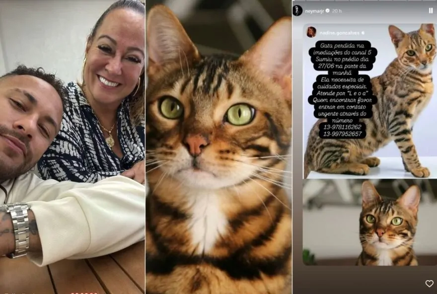 Nadine Gonçalves, a mãe do jogador de futebol Neymar Jr., utilizou as redes sociais para solicitar auxílio na busca pela gata de estimação ‘Leoa’, que desapareceu em Santos (SP), cidade localizada no litoral do estado de São Paulo. O atleta também compartilhou o pedido de ajuda na internet.