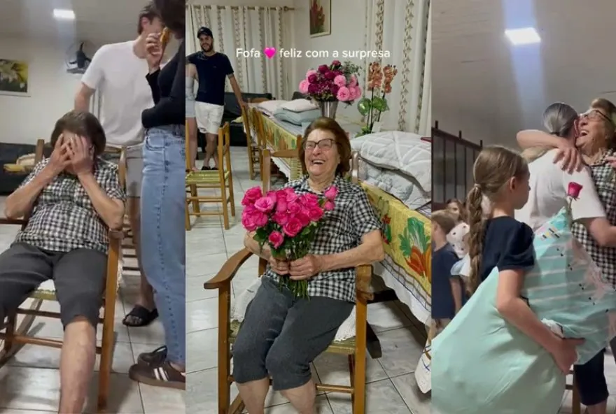 No vídeo, que chamou a atenção nas redes sociais, é possível ver Ida emocionada com a chegada de cada familiar. Os netos levaram travesseiros para a festa do pijama surpresa, e rosas para homenagear a avó. O encontro aconteceu em Bom Sucesso do Sul, no sudoeste do Paraná, em celebração ao aniversário da matriarca da família.