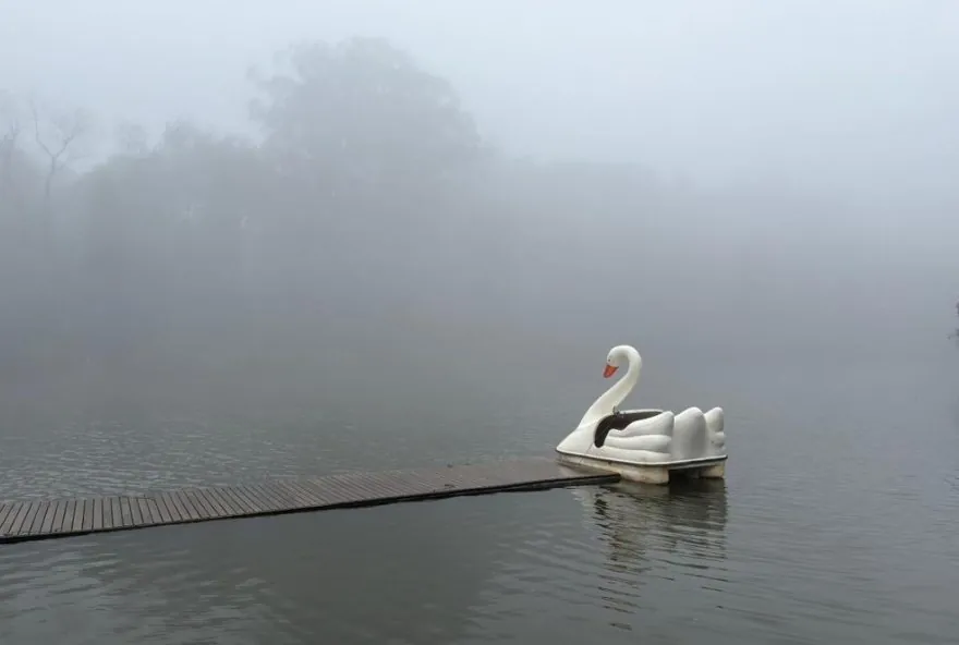 Lago Negro, em Gramado, com nevoeiro