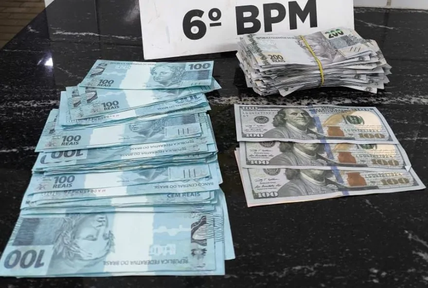Em busca pessoal, policiais militares encontraram o dinheiro falso com os homens. Eram notas que simulavam cédulas de R$ 100, R$ 200, além de cédulas de US$ 100 (dólar americano).