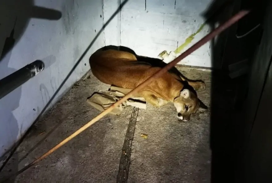 A onça parda capturada dentro de um lava-rápido na noite de sábado (14),