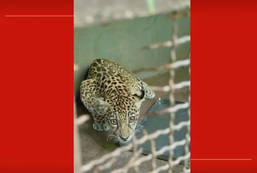 Filhote de onça-pintada é resgatado em Roraima e recebe cuidados do Cetas, no DF. — Foto: TV Globo/Reprodução