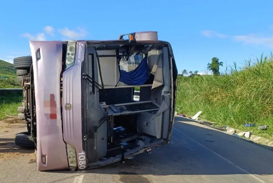 Acidente aconteceu neste sábado (2), no município de Ribeirão, na Zona da Mata Sul de Pernambuco. Motorista e alguns passageiros tiveram ferimentos leves, segundo a Polícia Rodoviária Federal (PRF).