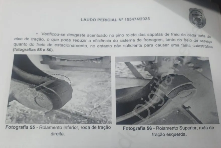 Segundo o IGP, desgastes nas sapatas de freio foram identificados, o que comprometeu a eficiência do sistema de frenagem. O motorista do ônibus, que não deve ser indiciado, afirmou que puxou o freio estacionário após atingir fios de luz, mas o veículo começou a se movimentar sozinho.