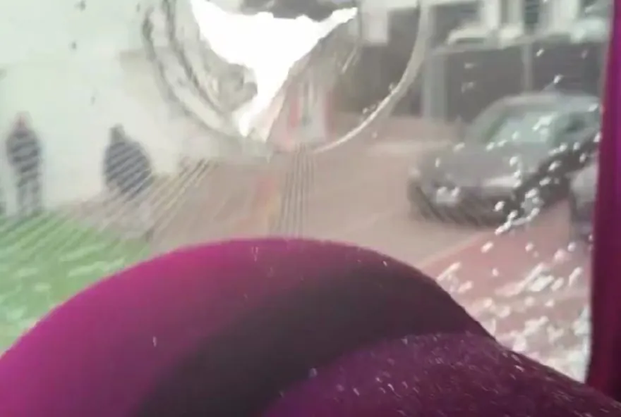 As imagens divulgadas pelo jogador mostram uma grande pedra no corredor do ônibus, junto com estilhaços de vidro e um buraco na janela. Não há informações sobre feridos.