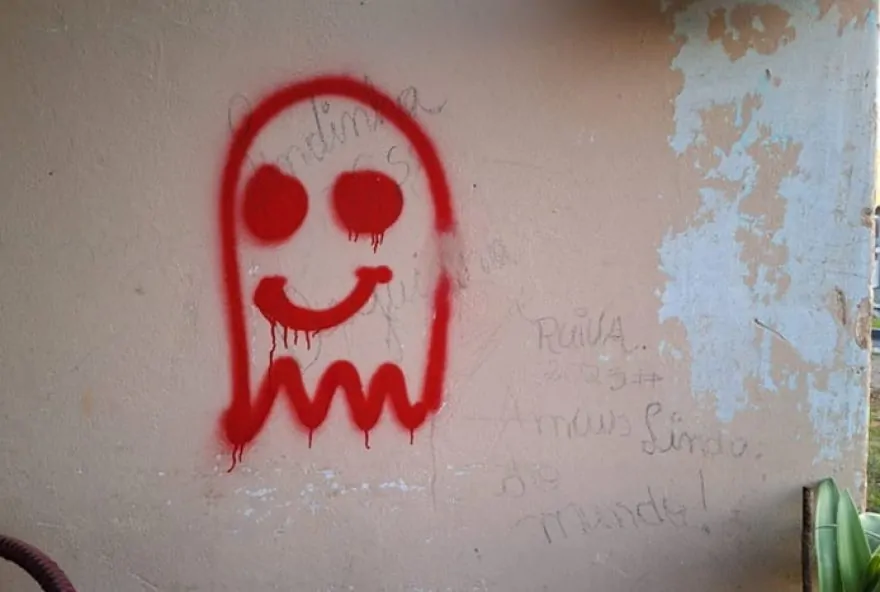 vandalismo — com destaque para as pichações feitas com tinta spray vermelha e