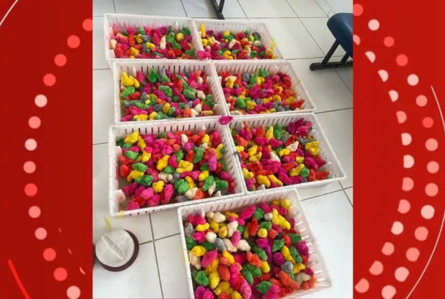 Uma operação realizada na cidade de Serrinha, localizada na Bahia, resultou na apreensão de 950 pintinhos coloridos que estavam sendo vendidos ilegalmente. As aves, que foram pintadas com corantes artificiais, foram encontradas na manhã de sexta-feira (11) em uma ação conjunta da Secretaria Municipal de Meio Ambiente e da Guarda Civil Municipal (GCM). O responsável pelas aves foi identificado como um menor de idade e encaminhado à Delegacia de Polícia Civil de Serrinha para os procedimentos legais.