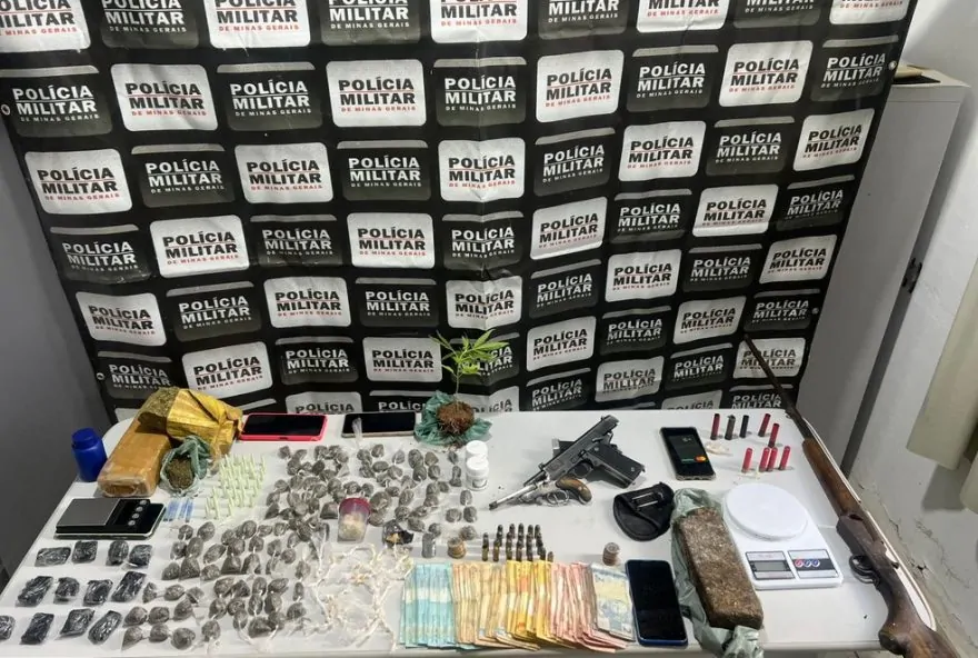 Na manhã desta sexta-feira (06), seis pessoas foram detidas durante o cumprimento de sete mandados de busca e apreensão em Tumiritinga, em uma ação que visava desarticular uma organização criminosa que atua no tráfico de drogas na região. As prisões foram realizadas pela Polícia Militar, que durante a operação apreendeu 122 buchas de maconha, duas barras de maconha, uma porção da mesma droga, além de 34 pinos de cocaína, 85 pedras de crack, cinco porções da droga, uma pistola ponto 40, uma garrucha, uma espingarda calibre 36, oito cartuchos, 24 munições, duas balanças de precisão e R$ 7.043,20 reais, juntamente com três cadernos com anotações do tráfico de drogas.