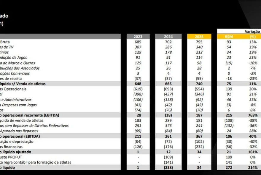 A principal fonte de renda continua sendo com direitos de TV. Para 2025 estão previstos R$ 340 milhões.