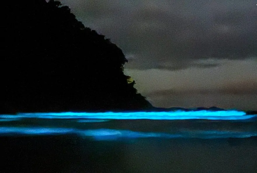 Fenômeno conhecido como “bioluminescência” encantou turistas nos últimos dias na Praia de Itamambuca.